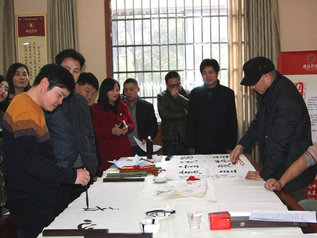 2015年12月8日下午,益陽市總工會黨組書記、副主席郭谷軒,市總工會副主席、市書法家協(xié)會副主席唐新華,市書法家協(xié)會常務副主席、秘書長石印文組織市書法名家蒞臨益陽茶廠有限公司舉行以“翰墨茶香”為主題的筆會活動。