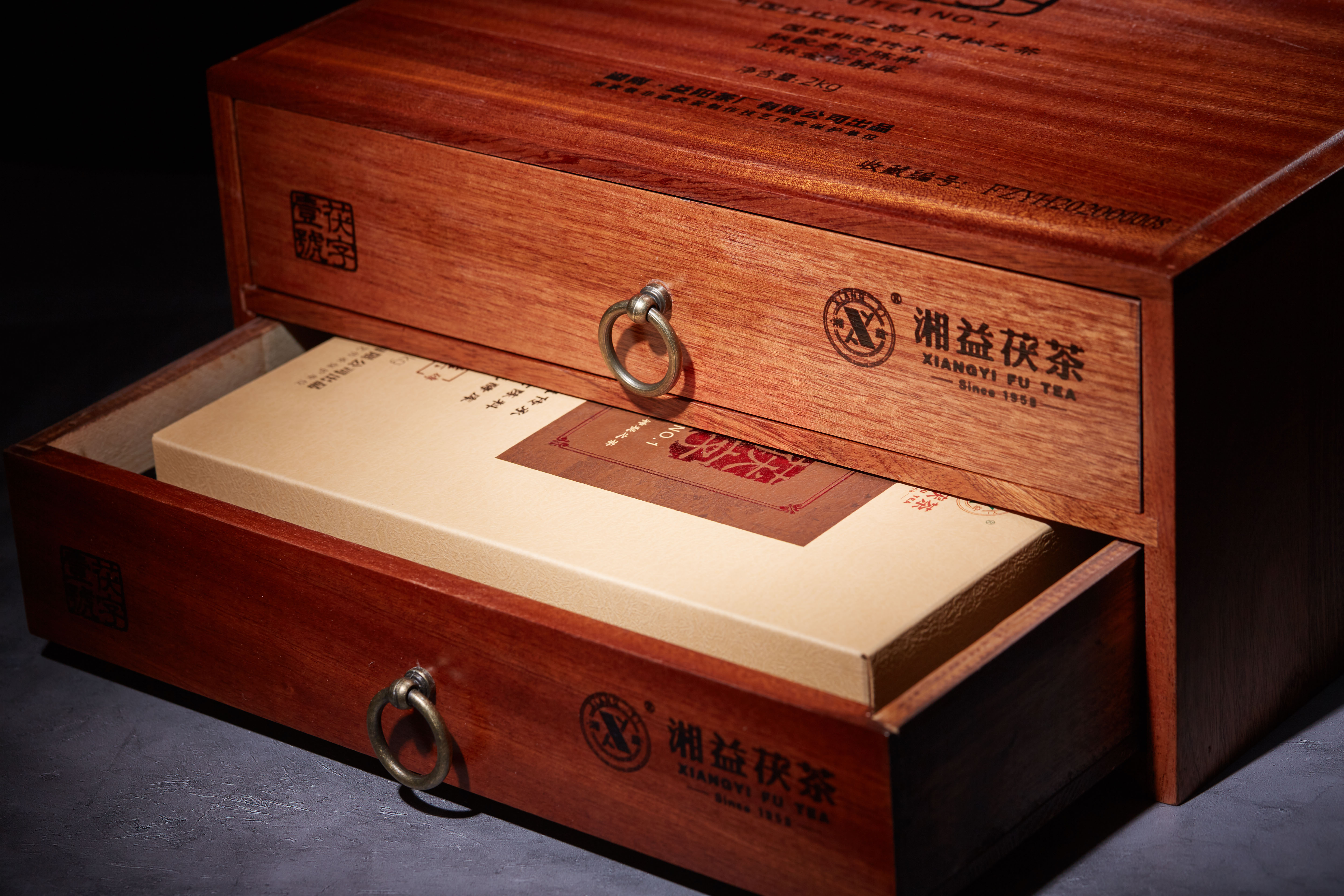 此外,包裝設(shè)計(jì)極富創(chuàng)意。特制進(jìn)口紅木,抽屜式拉盒設(shè)計(jì),沉穩(wěn)莊重。巧妙結(jié)合中國(guó)傳統(tǒng)刻字文化“陽(yáng)刻與陰刻”予以區(qū)分,既是產(chǎn)品包裝又可以疊加使用為茶葉儲(chǔ)藏柜,匠心獨(dú)運(yùn)。每套均有獨(dú)立編號(hào)和典藏證書,限量發(fā)售10000套,是一款有價(jià)有市的投資收藏尊品。