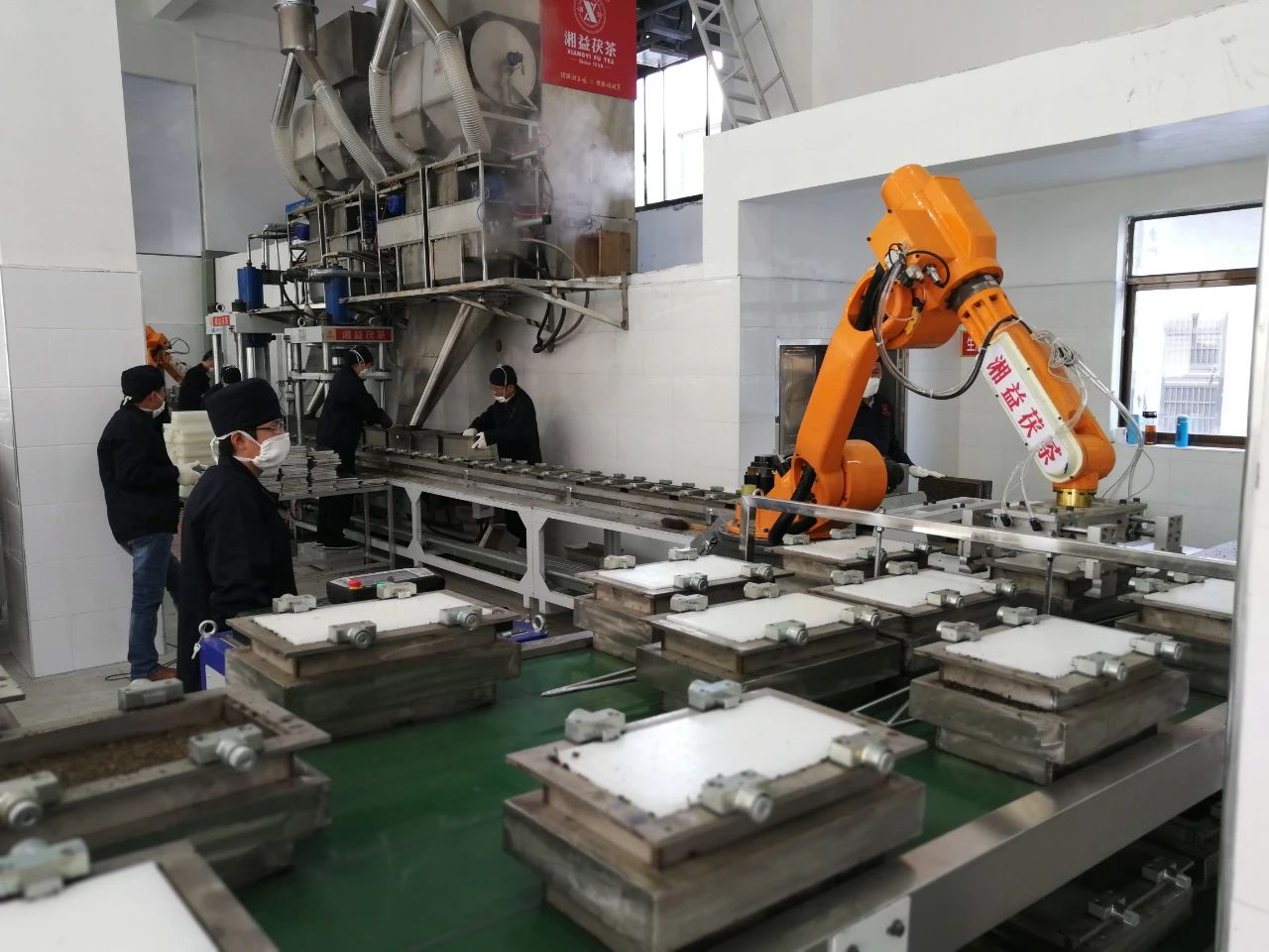 采風團參觀了萬噸原料儲備庫——該國家級儲備庫保障了邊銷茶對西北地區(qū)的穩(wěn)定供應;在湘益?zhèn)髁曀?,國家級非遺茯磚茶制作技藝代表性傳承人劉杏益展示了傳統(tǒng)的手筑工藝探訪了核心工藝環(huán)節(jié)“金花酵庫”,這里為茯茶標志性的“金花”提供了穩(wěn)定的發(fā)酵環(huán)境;在智能化生產(chǎn)車間,了解了茯磚茶4.0智能化生產(chǎn)線的運作。