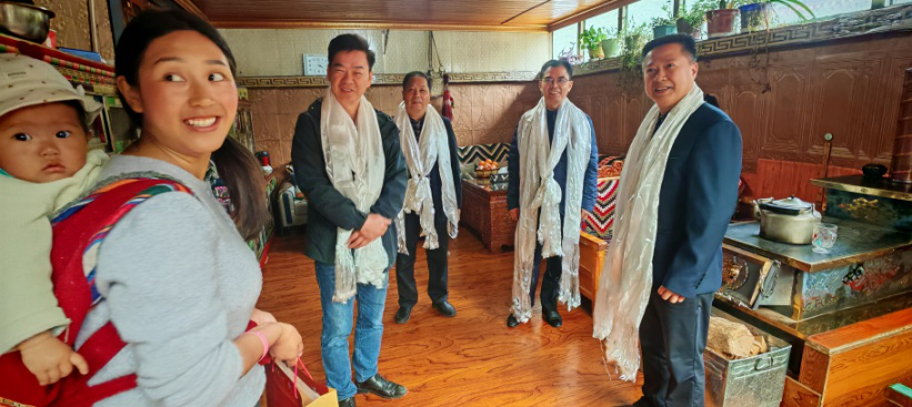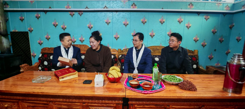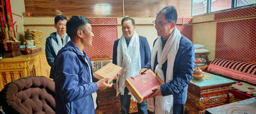 考察團(tuán)一行隨即前往山南市隆子縣調(diào)研,與隆子縣委書記李寧、縣委常委、統(tǒng)戰(zhàn)部部長嘎瑪?shù)┰龅阮I(lǐng)導(dǎo)進(jìn)行了會談。趙穎君一行在縣委常委、統(tǒng)戰(zhàn)部部長嘎瑪?shù)┰?、副部長索朗巴珠的陪同下,翻越了三座海拔超5000米山峰,深入隆子縣斗玉珞巴民族鄉(xiāng)、玉麥鄉(xiāng)、扎日鎮(zhèn)等鄉(xiāng)鎮(zhèn)及村,不僅學(xué)習(xí)了蔵區(qū)同胞的愛國主義思想、情懷與精神,而且考察了茶葉加工廠、了解藏區(qū)本地小眾茶的生產(chǎn)、區(qū)內(nèi)區(qū)外茶消費情況等,與此同時,還走進(jìn)藏民同胞家中,代表益陽市委統(tǒng)戰(zhàn)部贈送“湘益”茯茶、表達(dá)了益陽人民的熱情厚愛與對藏區(qū)人民的美好祝福。