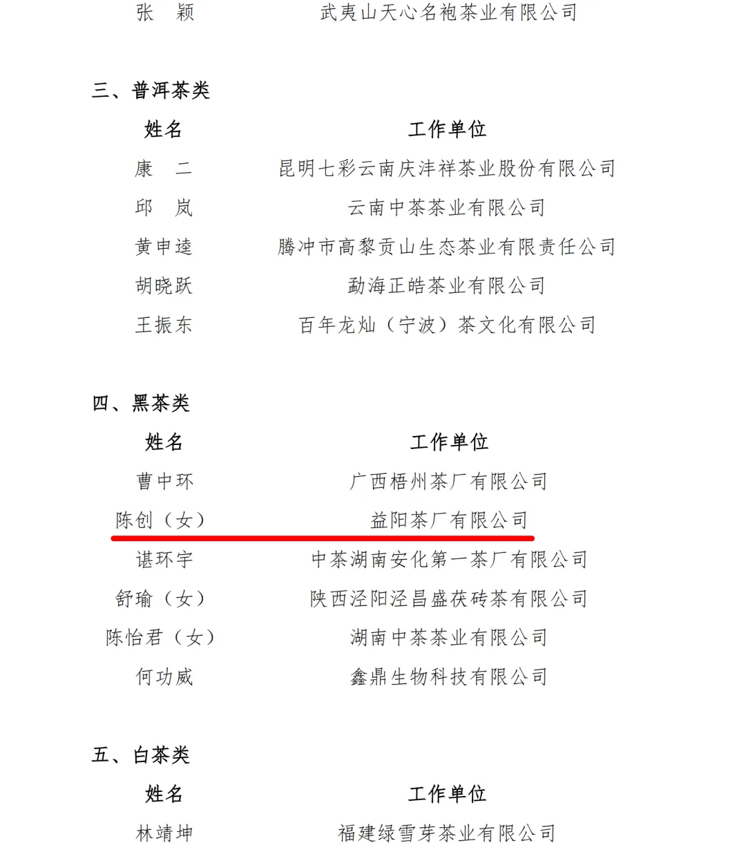 近日中國茶葉流通協(xié)會公布了2025“國茶人物·制茶大師”第十批調(diào)查結(jié)果及2025“國茶人物·制茶能手”第五批調(diào)查結(jié)果。其中,益陽茶廠有限公司陳創(chuàng)同志獲評“國茶人物·制茶能手”(黑茶類)。