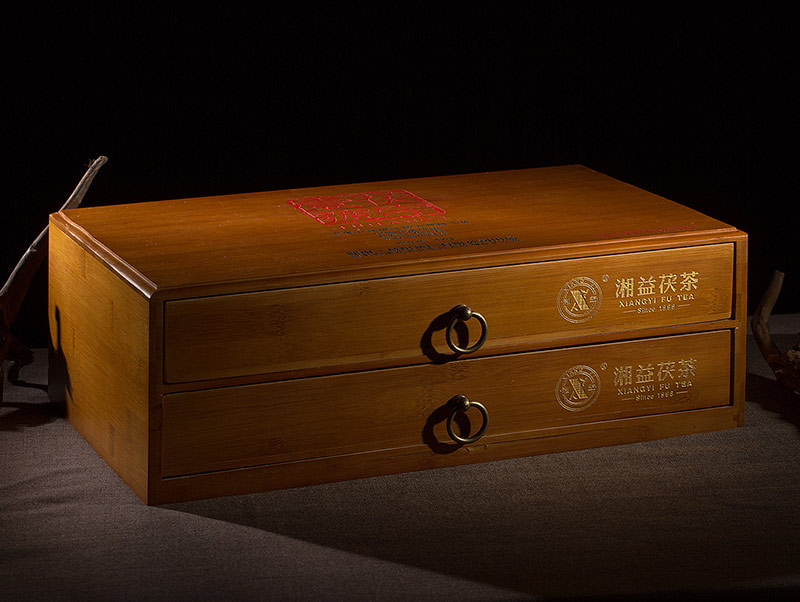 每件涵蓋機制茯磚茶和手筑茯磚茶2種茯磚茶形態(tài),每片規(guī)格為2kg ,設(shè)計匠心獨運,采用特制的抽屜式竹盒包裝,暨是產(chǎn)品包裝也可做茶葉樣品柜,每套竹盒都刻有獨立編號,限量發(fā)售。