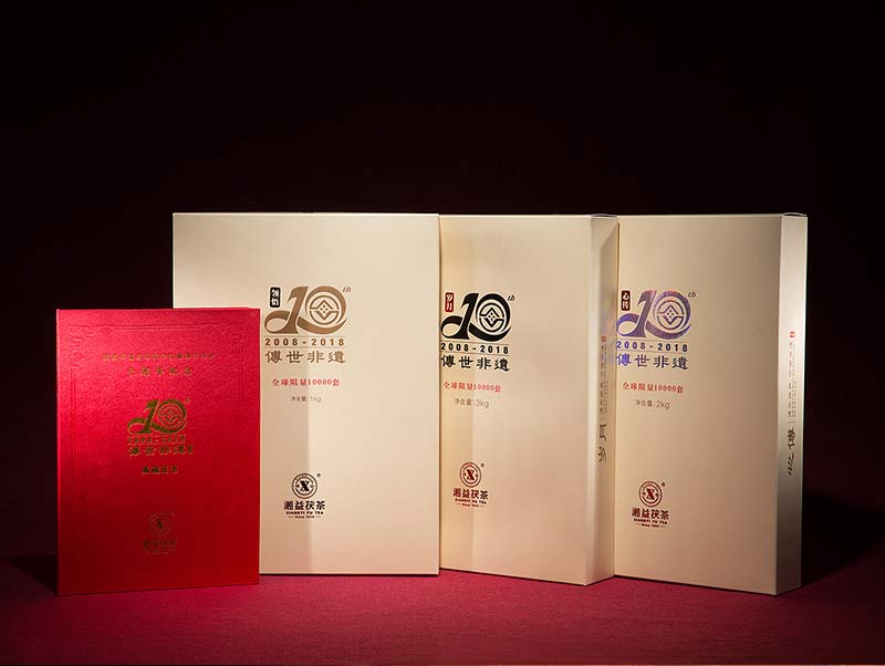 此款組合紀(jì)念茶限量收藏禮盒套裝為隆重紀(jì)念茯磚茶制作技藝列入國(guó)家非物質(zhì)文化遺產(chǎn)保護(hù)名錄十周年包含“歲月3kg”、“心傳2kg”、“領(lǐng)悟1kg”三塊精制手筑茯磚,每套均有劉杏益大師親筆簽名,并配備有獨(dú)立收藏編號(hào)的典藏證書,共10000套,收藏品飲價(jià)值皆宜。